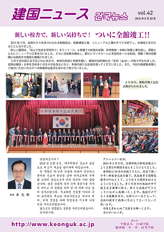 主な実績 建国ニュース Vol.42 制作時期:2015年6月 言語 :日本語・韓国語 作業内容:DTP・印刷 ※写真をクリックすると、大きな画像をご覧いただけます。 ◀ 古いデータへ 新しいデータへ ▶