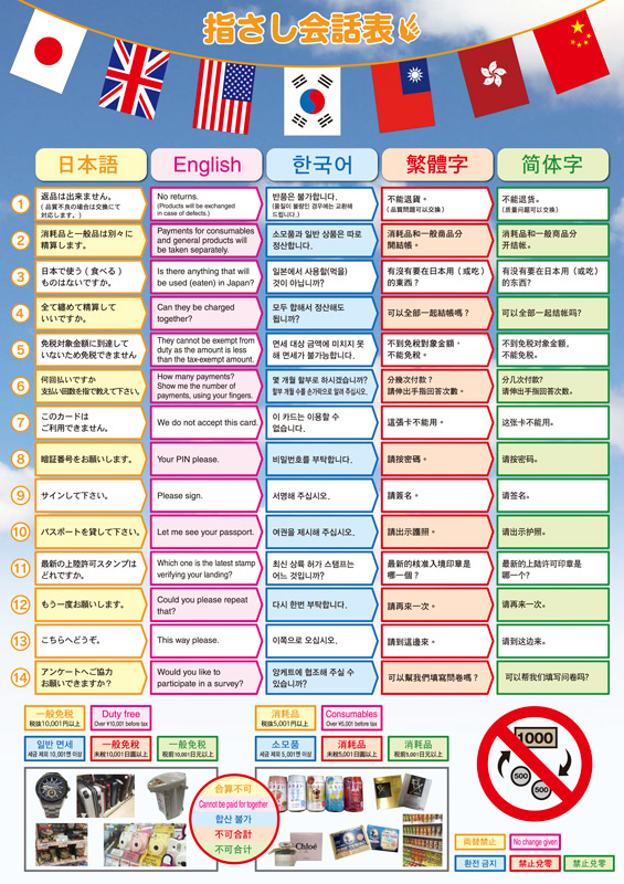 主な実績 指さし会話表 制作時期:2015年6月 言語:英語・中国語簡体字・中国語繁体字・韓国語 作業内容:翻訳・DTP ※写真をクリックすると、大きな画像をご覧いただけます。 ◀ 古いデータへ 新しいデータへ ▶